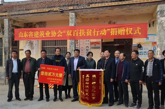 11月8日,山東省建筑業(yè)協(xié)會(huì)“雙百扶貧行動(dòng)”捐贈(zèng)儀式在菏澤市東明縣小井鎮(zhèn)夏營村正式啟動(dòng)。菏澤市東明縣掛職縣委副書記趙洪亮、省建筑業(yè)行業(yè)協(xié)會(huì)秘書長林濱等參加捐贈(zèng)儀式。匯通公司第一黨支部書記袁鵬作為省建協(xié)會(huì)員單位代表參加了活動(dòng)。脫貧攻堅(jiān)是黨中央、國務(wù)院作出的重大戰(zhàn)略部署,是全社會(huì)的重要責(zé)任。匯通公司作為省建協(xié)會(huì)員單位,深入貫徹扶貧開發(fā)的重要思想,領(lǐng)會(huì)精髓實(shí)質(zhì),以實(shí)際行動(dòng)積極參與“雙百扶貧行動(dòng)”。西夏營行政村位于小井鎮(zhèn)的東部,現(xiàn)有村民321戶,享受扶貧優(yōu)惠政策的共39戶,耕地面積3600畝,共有農(nóng)田灌溉機(jī)井22眼,遠(yuǎn)不能滿足灌溉農(nóng)田的需要。此次《幫扶西夏營村打機(jī)井增容項(xiàng)目》擬新打機(jī)井10眼,匯通公司