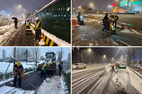 12月12日,泉城濟(jì)南迎來降雪天氣,持續(xù)的降雪給城市交通出行和市民生產(chǎn)生活帶來諸多不便,也給項(xiàng)目現(xiàn)場施工安全帶來嚴(yán)峻挑戰(zhàn)。匯通集團(tuán)第一時(shí)間啟動(dòng)冰雪天氣應(yīng)急預(yù)案,統(tǒng)籌調(diào)度各在濟(jì)項(xiàng)目迅速響應(yīng)。各項(xiàng)目部聞令而動(dòng),立即組建以黨員先鋒隊(duì)、青年突擊隊(duì)為核心的掃雪除冰攻堅(jiān)隊(duì),項(xiàng)目管理人員帶頭沖鋒,全體參建人員迅速投入戰(zhàn)斗,一場以“保暢通、保安全、保民生”為目標(biāo)的掃雪除冰攻堅(jiān)戰(zhàn)全面打響! 在各項(xiàng)目施工現(xiàn)場出入口、主干道、材料堆放區(qū)及周邊居民通行要道等關(guān)鍵區(qū)域,大家手持鐵鍬、掃帚,配合裝載機(jī)等設(shè)備分工協(xié)作,鏟積雪、清路面、撒融雪劑、除冰層。全體人員不畏嚴(yán)寒、干勁十足,經(jīng)數(shù)小時(shí)連續(xù)奮戰(zhàn),各項(xiàng)目轄區(qū)及周邊道路積雪