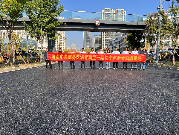 10月24日,隨著最后一車瀝青混合料碾壓完畢,濟(jì)南市中央商務(wù)區(qū)瀝青面層一期快車道瀝青上面層攤鋪工作順利完成。 濟(jì)南中央商務(wù)區(qū)瀝青面層一期包含新濼大街、茂嶺二號(hào)路、茂嶺三號(hào)路、規(guī)劃二號(hào)路、規(guī)劃一號(hào)路、天辰路共6條地面道路,道路總長度8377米,面積134401平方,瀝青總重13440噸。 濟(jì)南中央商務(wù)區(qū)瀝青面層一期項(xiàng)目中標(biāo)內(nèi)容只包含瀝青上面層攤鋪,基層由其他單位施工,項(xiàng)目部在進(jìn)場之初就嚴(yán)格把控基層施工質(zhì)量,積極配合相關(guān)單位處理基層病害,確保瀝青面層成形質(zhì)量。在施工過程中道路兩側(cè)地塊施工項(xiàng)目及居民眾多,項(xiàng)目部前期縝密策劃交通組織方案,提前發(fā)布施工公告通知周邊居民及單位,將交通擁堵降至最