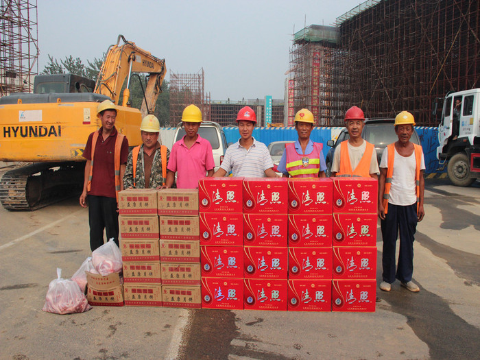 9月7日,中秋節(jié)前夕,我們的城市建設者,我們的農(nóng)民工兄弟卻仍然堅守在一線,為了農(nóng)民工也能感受到節(jié)日的歡樂和溫馨,在集團副總經(jīng)理兼五分公司經(jīng)理呂守明安排下,五分公司工會分會為農(nóng)民工兄弟送去了白酒、月餅等慰問品,及節(jié)日的祝福,讓他們感受到了來自企業(yè)大家庭的溫暖和關懷,讓農(nóng)民工充分感受“家”的溫暖,過一個充滿幸福的中秋節(jié)。