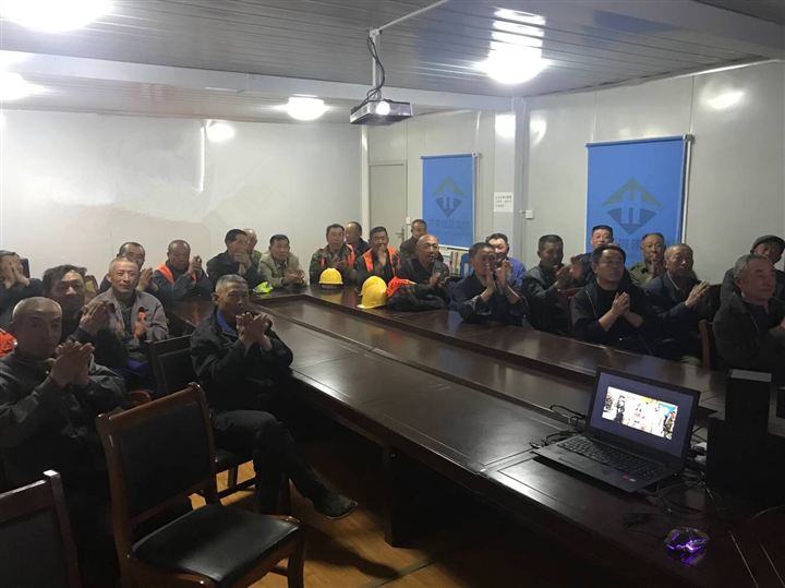 落日余暉剛剛消散,忙碌了一天的工人們也剛剛吃過晚飯,便相邀結(jié)隊地走進了項目部會議室,原來是匯通公司工會分會、團支部為豐富大家工作之余的文化生活,倡導健康、文明的生活理念,聯(lián)合舉辦的“關愛農(nóng)民工,電影進工地”活動于2019年3月26日來到了西沙東路項目部。本次活動為農(nóng)民工們放映的影片是《中國藍盔》,作為中國首部維和軍事題材電影,影片講述了當下中國維和部隊官兵在非洲堅決執(zhí)行習主席指示的“構(gòu)建人類命運共同體”的大國方針,該影片通過講述維和部隊官兵在海外執(zhí)行維和任務中發(fā)生的感人故事,從視野上更體現(xiàn)出了中國軍人的大格局和大擔當,他們以自己的實際行動彰顯了中國“愛和平、負責任”的大國風范。“這電影不孬!”