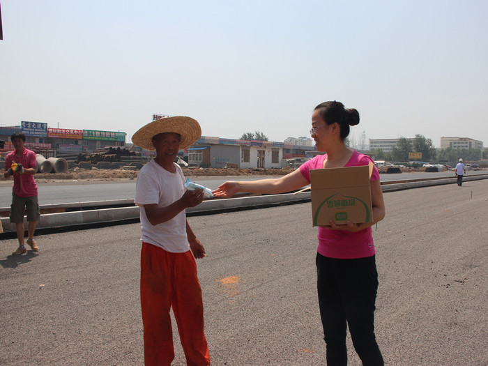 5月30日上午,五分公司辦公室人員帶著對高溫環(huán)境下作業(yè)勞動者的深情關愛,將一批防暑降溫慰問品送到一線職工手中,“關愛職工夏送清涼”—防暑降溫慰問活動正式啟動。在施工現(xiàn)場,揮汗如雨的工人們正在緊張地進行底面層攤鋪,辦公室人員向一線職工和勞務工人們一一送上雪糕和防暑飲料。給工人們送上一份清涼,也送去一份關心和問候。