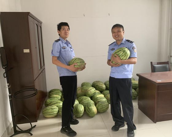 酷暑時(shí)節(jié),巡警執(zhí)法人員頂烈日、冒酷暑,為保障一方群眾平安不辭辛苦。匯通公司黨總支積極開展“我為群眾辦實(shí)事”實(shí)踐活動(dòng),著力構(gòu)建和諧的警民關(guān)系。近日,匯通公司為駐地歷城區(qū)公安分局巡警大隊(duì)警務(wù)站送去了夏日慰問品。 “一瓶礦泉水、一塊西瓜可能對(duì)很多人來說并沒有什么,但對(duì)于我們來說猶如雪中送炭一樣及時(shí),謝謝你們?cè)谶@炎炎夏日里為我們送來了清涼!”歷城區(qū)公安分局巡警大隊(duì)大隊(duì)長邢強(qiáng)代表全體民警、輔警,感謝企業(yè)對(duì)公安工作的理解與支持,并表示將以更加飽滿的工作熱情投入到巡邏防控工作中,為企業(yè)、為群眾做好服務(wù),為創(chuàng)造良好的營商環(huán)境做出貢獻(xiàn)。