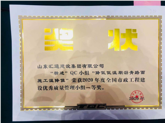 近日,由山東匯通建設(shè)集團(tuán)有限公司組建的“飛躍”和“精進(jìn)”QC小組參加了中國市政協(xié)會(huì)舉辦的2020年度全國市政工程建設(shè)優(yōu)秀質(zhì)量管理評(píng)比交流會(huì),并在100多個(gè)參會(huì)小組中脫穎而出,雙雙榮獲全國市政工程建設(shè)優(yōu)秀質(zhì)量管理小組一等獎(jiǎng)。 此次QC評(píng)比交流會(huì)中,山東匯通建設(shè)集團(tuán)有限公司組建的“飛躍”QC小組發(fā)布的“降低瀝青混合料生產(chǎn)燃?xì)庀牧俊焙汀熬M(jìn)”小組發(fā)布的“降低低溫期瀝青路面施工溫降值”兩個(gè)課題,在該小組成員努力及公司領(lǐng)導(dǎo)和技術(shù)質(zhì)量部的指導(dǎo)之下,按時(shí)提交了此課題的活動(dòng)成果,并在發(fā)布會(huì)上發(fā)揮出色,綜合評(píng)分名列前茅,為公司爭得榮譽(yù)。 此次成績的取得,正是源于項(xiàng)目部員工日常工作的積累,對(duì)細(xì)節(jié)的把握和