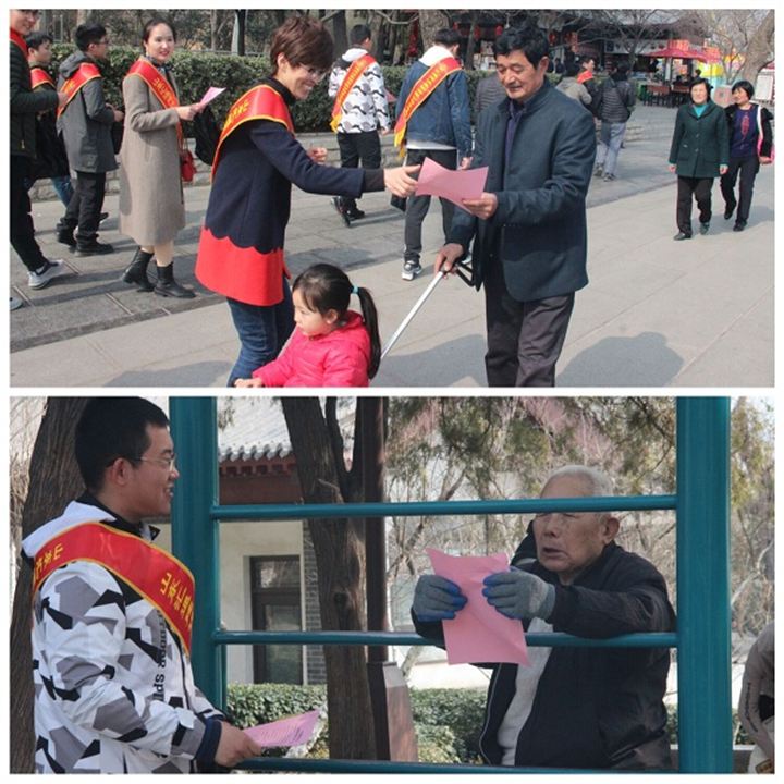 陽(yáng)春三月,萬(wàn)物復(fù)蘇,三月是一個(gè)春意盎然的時(shí)節(jié),更是一個(gè)講文明、樹(shù)新風(fēng),讓雷鋒精神遍布華夏大地的季節(jié)。17名青年志愿者來(lái)到濟(jì)南大明湖風(fēng)景名勝區(qū),拿起掃帚、垃圾夾、垃圾袋等工具,自發(fā)投入到清掃隊(duì)伍中,開(kāi)始了今天的“戰(zhàn)斗”。他們有的蹲下來(lái)?yè)炱鸬厣蟻y扔的煙頭,有的把手伸進(jìn)灌木叢清理黏貼的口香糖,有的手拿“共建綠色家園 共享一片藍(lán)天”倡議書(shū)分發(fā)給游園的市民,呼吁廣大市民從我做起,讓文明之風(fēng)吹遍泉城大地。活動(dòng)過(guò)程中,志愿者們分工有序,配合默契,干勁十足,豆大的汗珠從臉頰滑落也渾然不知,過(guò)往游客紛紛豎起大拇指,為他們點(diǎn)贊。