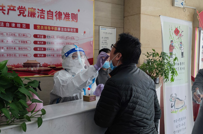 自11月30日起,隨著解除封控回到基地上班的職工陸續(xù)增加,有職工提到自己居住地核酸檢測時間結束的早,很怕耽誤了檢測,無法按時上班。分公司后勤保障組組長馬婕立刻多方打聽,詳細詢問,反復溝通,終于得到華山街道辦事處的回復,可以上門對核酸檢測進行培訓和指導。很快,由小組成員李小嬌、張文鳳和物業(yè)公司工作人員組成的臨時核酸檢測點籌備完成。