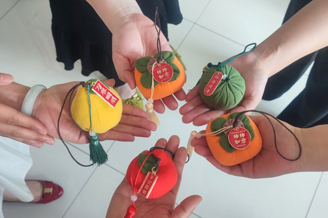 民間素來有諺語“戴個香草袋,不怕五蟲害”。每逢端午節(jié)來臨,除了包粽子還有一個縫制佩戴艾葉香包的習俗,驅(qū)瘟避疫、強身健體,足以看出人們對美好生活的向往之情,因此,匯通集團分會還貼心的為大家準備了寓意美好的艾草香囊,有萬事順梨、好運連連、柿柿如意、平安喜樂等,香囊的艾味濃郁,顏值頗高,讓大家愛不釋手,連連稱贊。